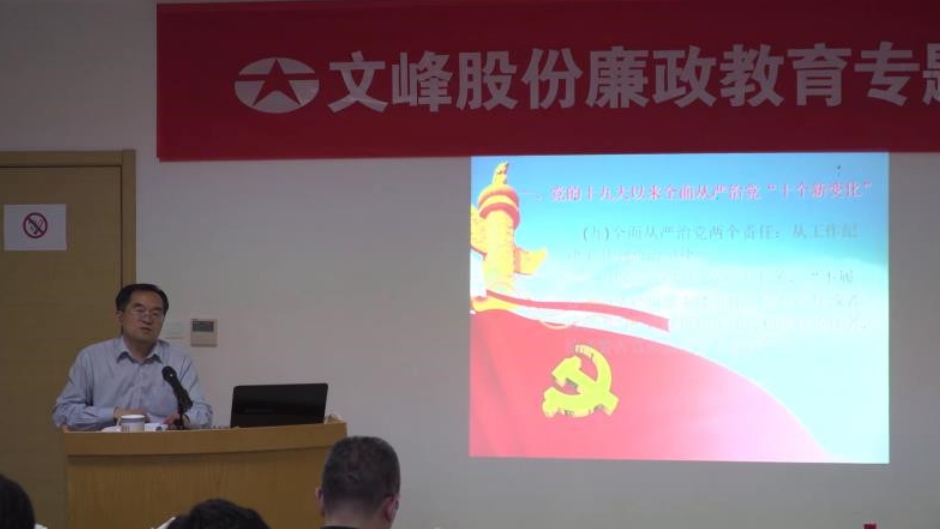 ? 5月16日,文峰股份特邀南通市紀(jì)委常委湯明文在文峰商學(xué)院開展廉政教育專題講座。公司總經(jīng)理室全體成員及相關(guān)部門負責(zé)人、各分公司總經(jīng)理助理以上高管人員參加了會議。