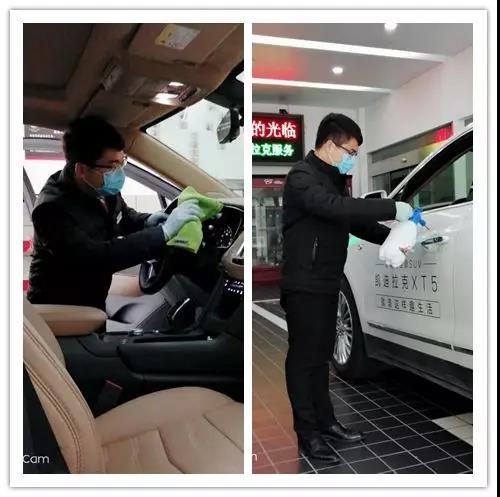 疫情發(fā)生后,公司第一時間制定了相關的規(guī)章制度,汪慶和同事們佩戴防護設備,每天至少兩次對售后及銷售辦公區(qū)域消毒,為所有到店看車的客戶測體溫,并提供口罩、手套等防控用品。