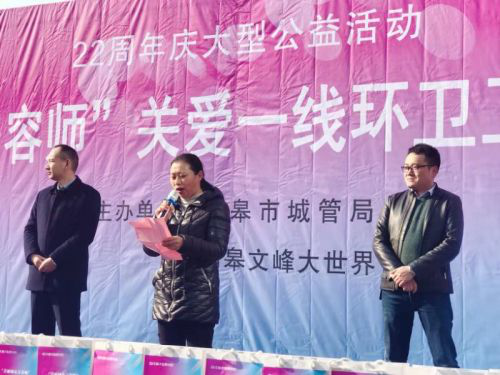 12月7日,在文峰大世界如皋店廣場,文峰大世界如皋店22周年年慶及大型公益活動隆重舉行,此次公益活動的主題為——“美麗城市美容師”關愛一線環衛工人。如皋市城管局相關領導和文峰大世界如皋店相關負責人出席了本次活動。捐贈儀式環節,市城管局和文峰大世界如皋店的領導,共同為可親可敬的“城市美容師”們送上了關愛與祝福。