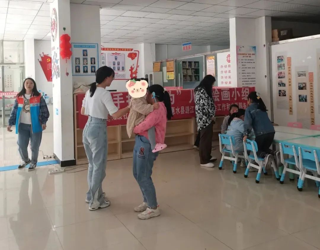 我們到達的惠水縣的那天有幸參觀了機構(gòu)在搬遷社區(qū)為兒童開展的繪畫活動。一進門,提前等候的小朋友便跑過來圍住了社工,有的小朋友幫忙擺放桌椅布置場地,有的拉住社工說起自己的“小秘密”,還有的熟練地接過簽到表進行簽到。