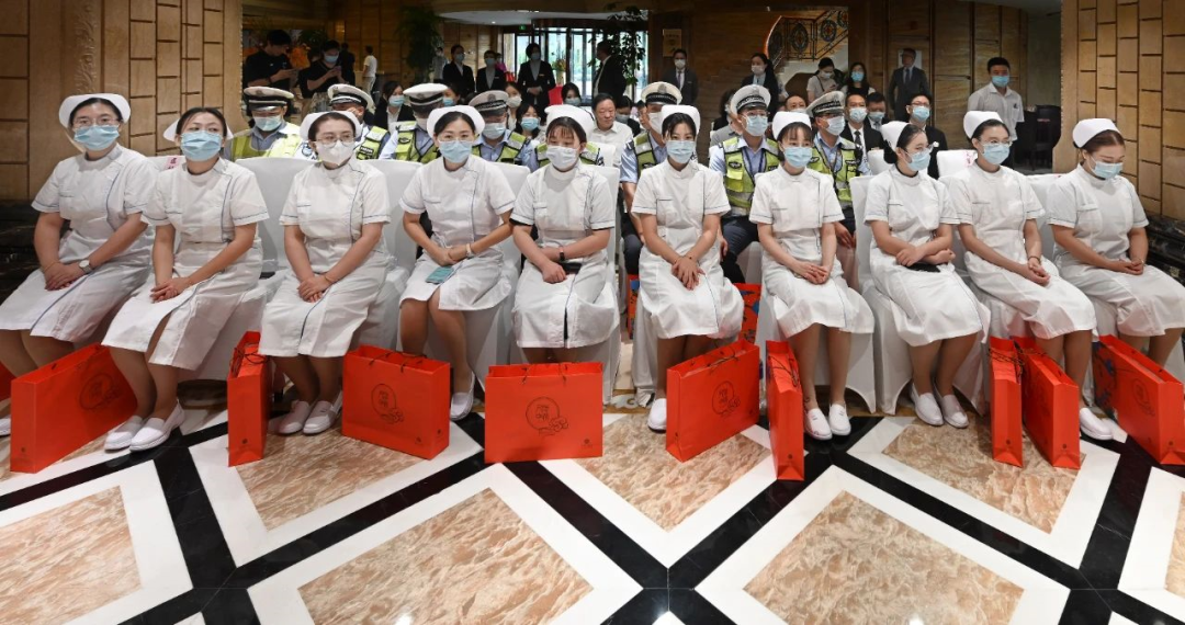 市總工會副主席成飛、商會裴浩兵、常務副會長姚海林、副會長施軍為“白衣戰士”和交警代表發放了中秋愛心月餅。