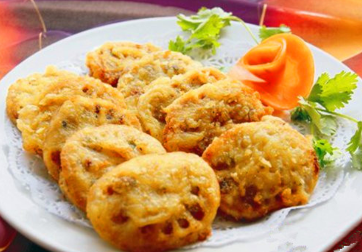 中秋節吃藕餅寓意團圓,制作的主要食材除了新鮮蓮藕以外,還會加入肉餡。厚薄均勻的兩片藕,夾帶著肥而不膩的肉餡,裹上那一層面粉漿糊,在油鍋里一炸,兩面金黃,香味撲鼻,外酥里脆,非常的誘人。南通人在中秋吃藕餅就像吃月餅一樣,同時藕餅也是各大聚會必點的美食之一。